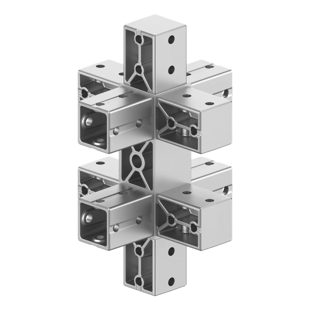 Kullanım Alanları: İskelet sistemlerinin orta kesişim noktaları, geniş yüzeyli modüler yapılar, endüstriyel DIY projeleri, minyatür ev iskeletleri ve çok yönlü atölye kurulumları için en ideal çözümdür.