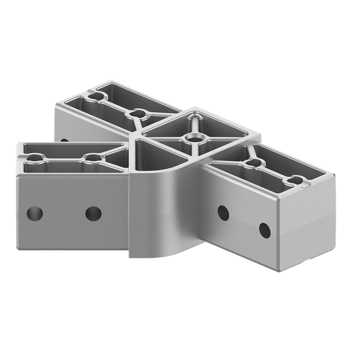 Açılı T Birleşim Avantajı: Standart dik bağlantıların aksine, dikey bir hatta 45 derecelik bir açıyla üçüncü bir profil eklemenize olanak tanıyarak iskeletin mukavemetini ve tasarım derinliğini artırır.
