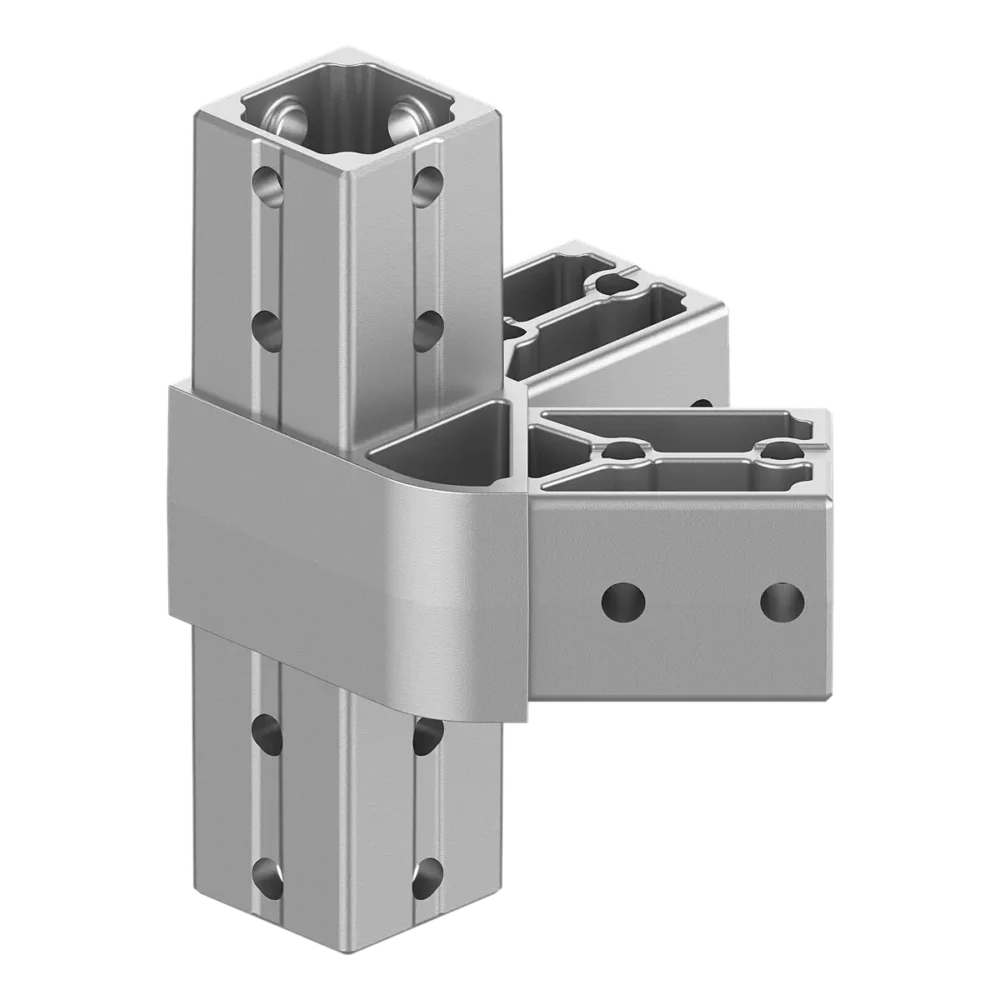 Modüler yapı projelerinizde eğimli kenar bitişleri ve üst yönlü genişlemeler için tasarlanan 4040HA04-4 45° Açılı Üst Yönlü Dört Yollu Kenar Bağlantı Konnektörü, 40×40 mm profillerle kurulan iskeletlerde kritik köşe-yüzey geçişlerini kusursuzlaştırır. Sabit 45 derecelik açısı ve yukarı yönlü bağlantı imkanı sayesinde, teknik hesaplama gerektirmeden profesyonel bir yapı formu oluşturmanızı sağlar.