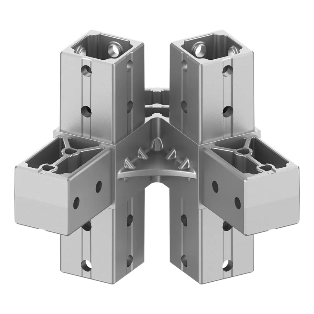 Çatı ve mahya sistemlerinize profesyonel bir boyut kazandıran 4040ER06-1 60° Açılı Çift Yön Aşıklı Mahya Bağlantı Konnektörü, 40×40 mm profillerle kurulan modüler yapılarda dik açılı çatı kurulumlarını kusursuz hale getirir. 60 derecelik özel sabit açısı ve çift yönlü aşık desteği sayesinde, teknik karmaşaya girmeden yüksek mukavemetli çatı iskeletleri kurmanız için tasarlanmıştır.