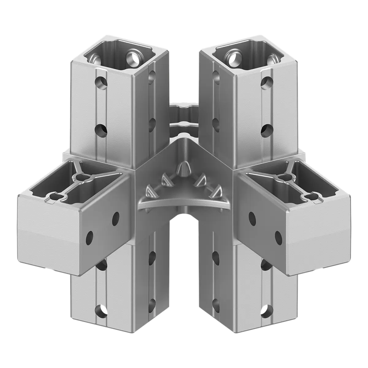 Çatı ve mahya sistemlerinize profesyonel bir boyut kazandıran 4040ER06-1 60° Açılı Çift Yön Aşıklı Mahya Bağlantı Konnektörü, 40×40 mm profillerle kurulan modüler yapılarda dik açılı çatı kurulumlarını kusursuz hale getirir. 60 derecelik özel sabit açısı ve çift yönlü aşık desteği sayesinde, teknik karmaşaya girmeden yüksek mukavemetli çatı iskeletleri kurmanız için tasarlanmıştır.