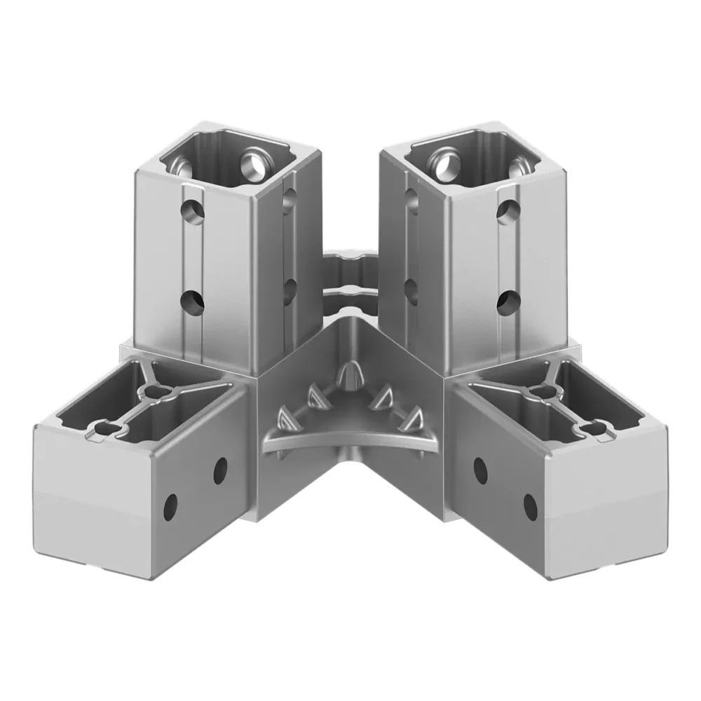 Modüler yapı projelerinizde dik açılı mahya hatları ile yüksek eğimli aşıklara geçişi tek bir noktada çözen 4040ER04-1 60° Açılı Tek Yön Aşıklı Mahya Bağlantı Konnektörü, 40×40 mm profillerle kurulan çatı sistemlerinde en kritik düğüm noktasını oluşturur. Sabit 60 derecelik dik açısı ve tek yöne bakan aşık çıkışı sayesinde, karmaşık çatı geometrilerini yüksek mühendislik hassasiyetiyle birleştirmenize olanak tanır.