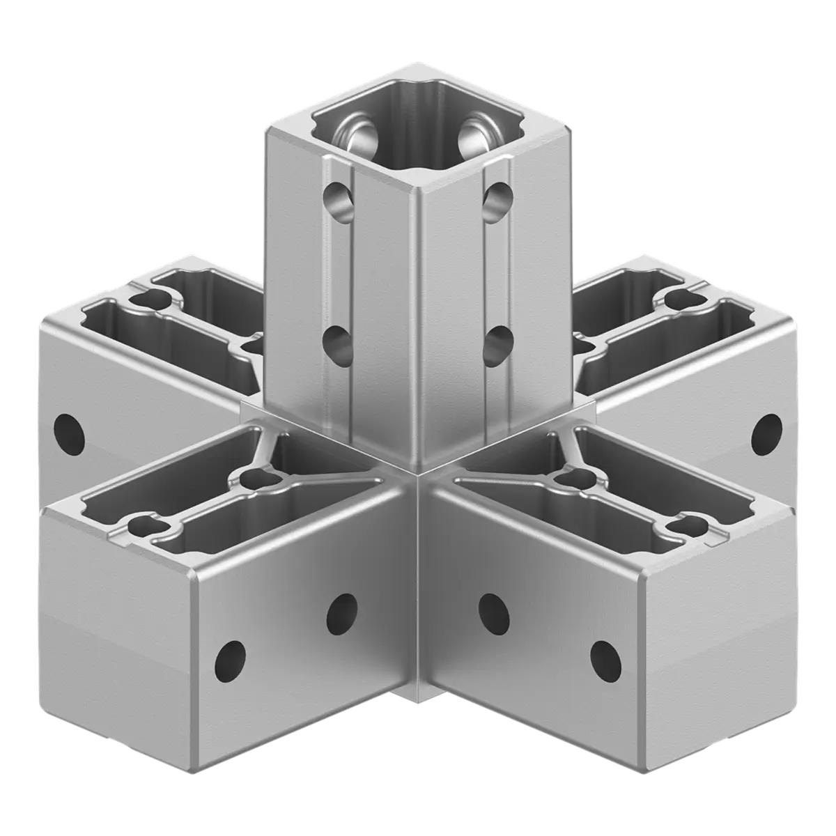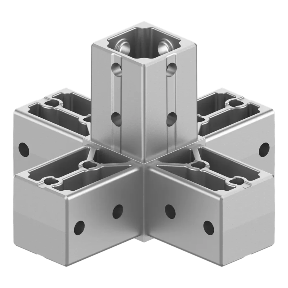 Beş Yönlü Fonksiyonel Tasarım: Bir ana dikmeyi, dört farklı yönden gelen yatay kayıtlarla tek bir merkezde toplar. Bu sayede ızgara tipi zemin veya tavan yapılarında dikey desteklerin hatasız bağlanmasını sağlar.